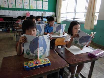「俳句を楽しもう」では,五・七・五の十七音のリズムを楽しみながら,声に出して読みました。俳句には季語が入っており,子どもたちも情景を思いうかべながら読めました。