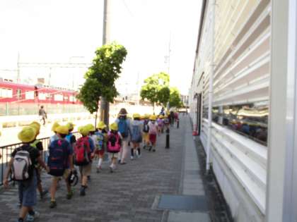 出発するときに,歩き方について確認しました。みんな歩き方ばっちりだね。
