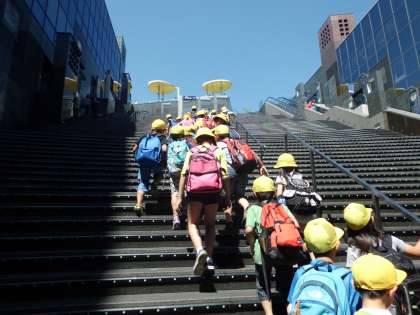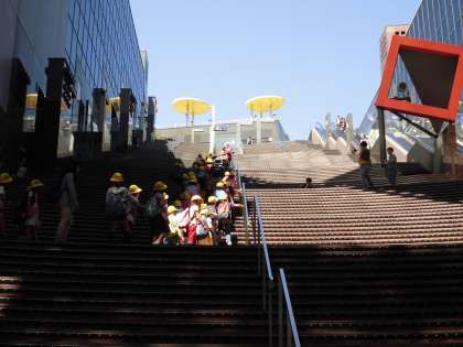 京都駅の上には,大階段があります。