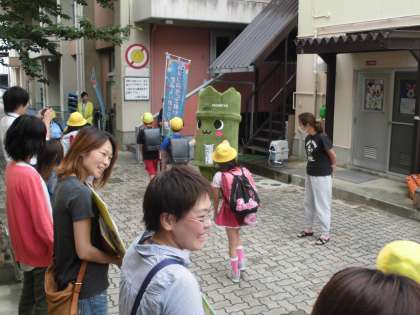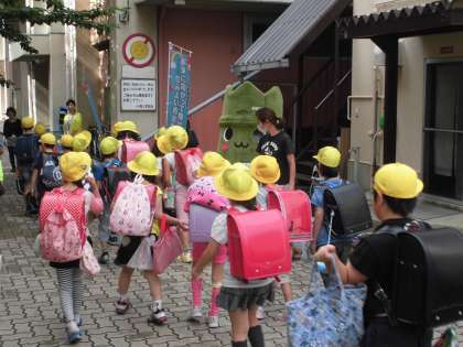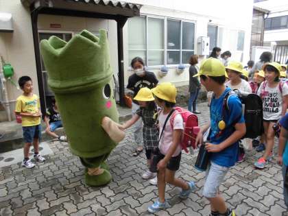 今日は朝のあいさつ運動に西京区のマスコットキャラクター「たけにょん」がやってきてくれました。子どもたちも大喜びでした。