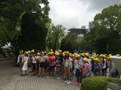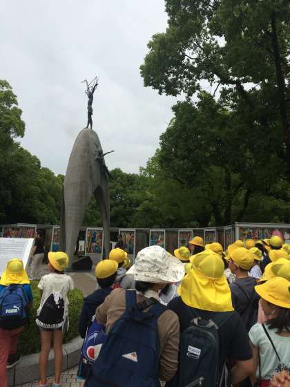 爆心地見学しました。みんなで作った鶴をおさめました。雨も上がりました。