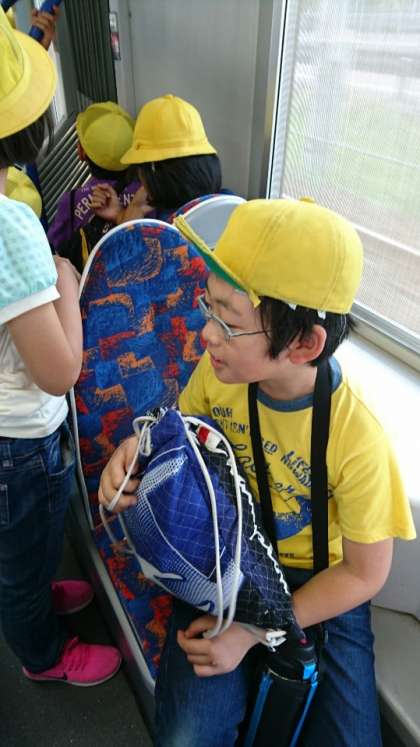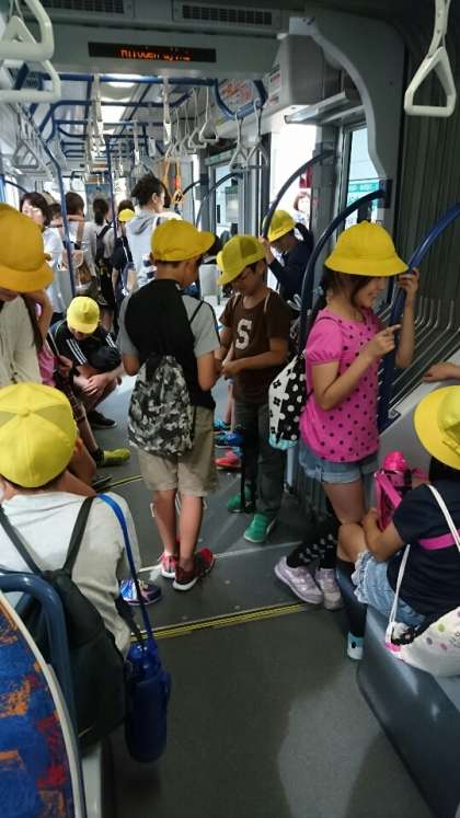 広電の中です。もうすぐ終点,いよいよ厳島神社が見えます。