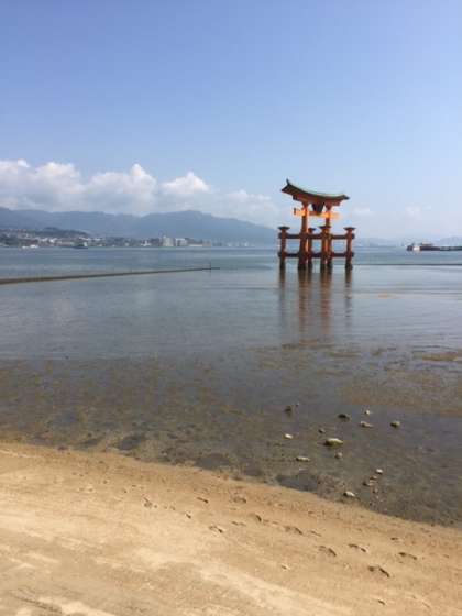 宮島ラリースタートです。とてもよい天気,よい景色ですね!