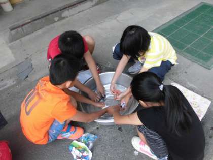 みんなで手洗いの洗濯をしました。きょうは日差しもきつく,良い洗濯日和になりました。自分で洗ってみると洗濯の大切さがよく分かりますね。ぜひ家でもやってみましょう。