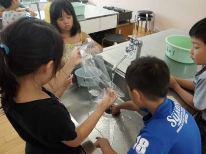 「もう少しすくなくない?」「もう少し入れよう。」とグループのみんなで協力して考えました。