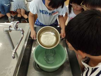 両手なべ・片手なべ・やかんなどのかさを予想して実際にはかってみました。