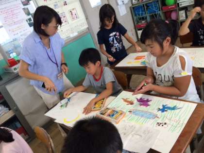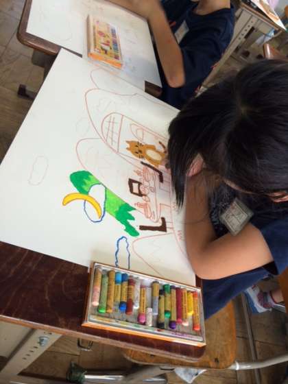 今日の図工はお話の絵。みんな真剣に取り組んでいます。