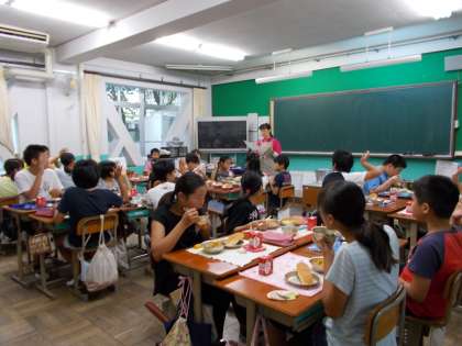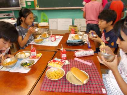 読んでもらって,きょうの給食のおいしさを教室のみんな