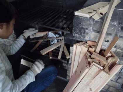 火おこしで作った火を使って昼食の野外炊飯を行いました。