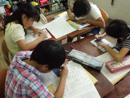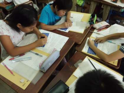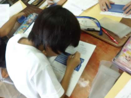 今日は,点字器を使って点字の打ち方を練習しました。初めて打つ点字に興味深く学習したいました。次の時間は,点字で名刺を作る予定です。