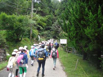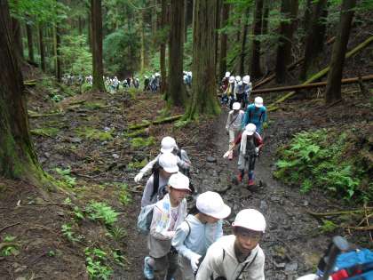 かなり距離のある登山コースでしたが,みな力を合わせて元気いっぱいで登ってきました。頂上付近からは京都市全域から大阪のほうまで景色が見渡せました。また下山途中の道からは反対側に滋賀県の琵琶湖や橋を見下ろすことができました。