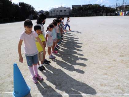 十数える間,自分のかげぼうしを見つめて,そのまま空を見ます。