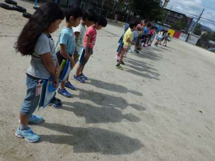 「ちいちゃんおかげおくり」の物語のように,かげおくりをしてみました。