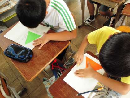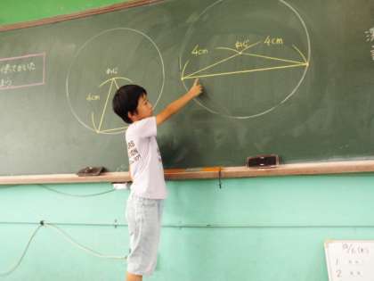 円と半径を使って,二等辺三角形と正三角形をかきました。