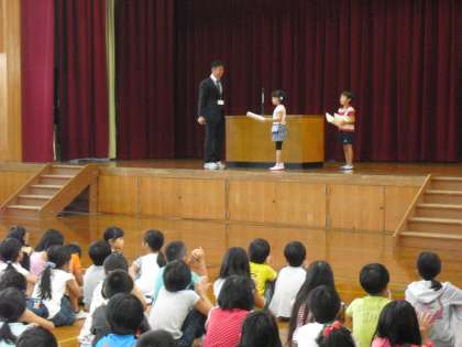 また,式終了後には前期がんばった子どもたちの図工や書写の表彰がありました。
