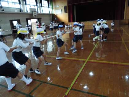 運動会に向けて,「棒ひき」の学年練習が始まりました。