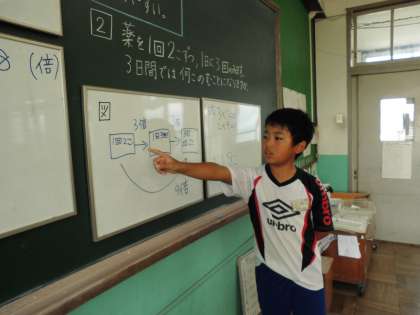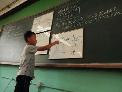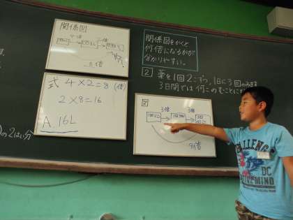 関係図をかいて考え,みんなに説明しました。