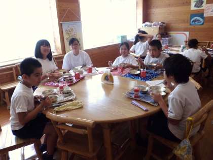ランチルームで食べる給食はよりおいしいです。今日のメニューは,「ご飯・親子煮・ひじき豆」でした。いつもぺロリ賞です。