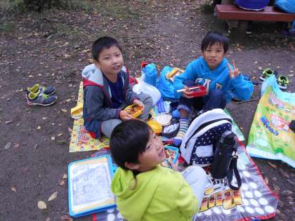 そろそろ「ごちそうさま」かな?お弁当を食べた後は,なかよしグループで遊びます。