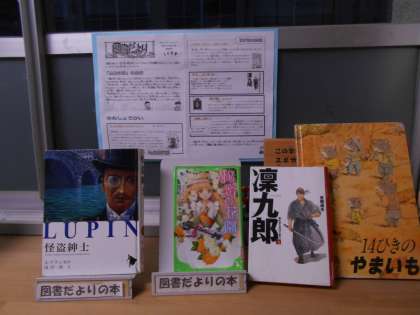 また,図書だよりで紹介した本は,図書室の靴箱の上に置いてあります。どんどん借りて読んでくださいね。