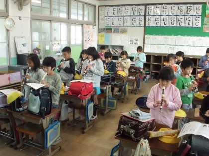 毎日,帰りの会で一曲演奏してから帰ります。