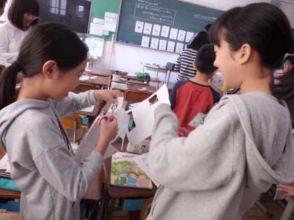 今日は,アルファベット辞書を作るために,友だちや自分がほしいカードを尋ねたり,答えたりしました。素敵な辞書を作ることができたかな。