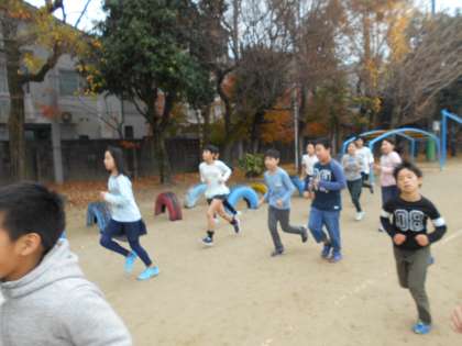 今日も音楽に合わせて一生懸命走っています。終わったあとは,みんな手洗いうがいをしています。寒くなってきましたが,しっかりと体調を整えてくださいね。