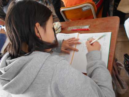 分数のかけ算,わり算の計算練習をしました。途中計算もしっかりと書いています。