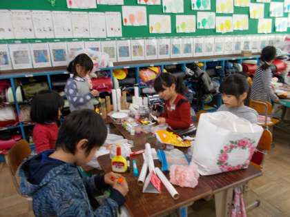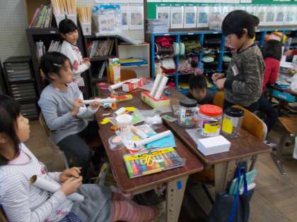 いろいろな材料からたくさんのひらめきが生まれて,素敵なおもちゃが出来上がるのが楽しみです。