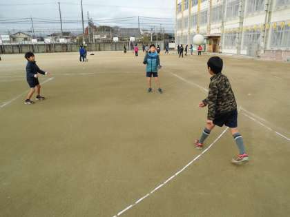 寒い朝ですが,運動場で元気に遊んでいます。ドッジボールのメンバーが揃うまでキャッチボールをしています。