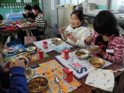今日の献立ははみんなの大好きなカレーです。体育や川岡タイムでたくさん運動して,おなかがペコペコ。より一層美味しくいただきました。ごちそうさまでした。