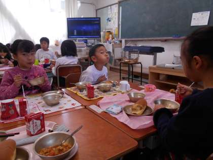 いよいよ明日は持久走大会です。給食時間中も,その話題でもちきりでした。みんな,もりもり食べて,明日がんばってね。