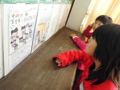 国語の学習で作った「ポップ」を教室掲示しています。読んでみたくなる「ポップ」がいっぱい。友だちが紹介してくれた民話や昔話をたくさん読みたいですね。