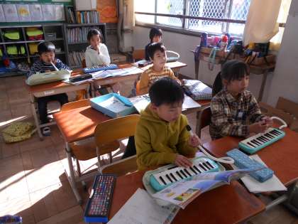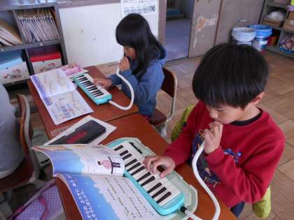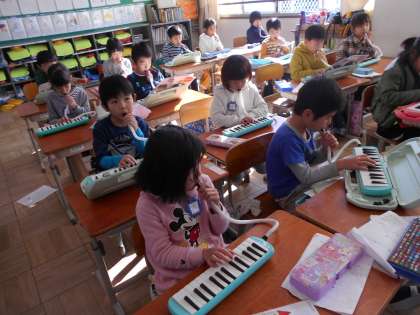 けんばんハーモニカで,「きらきらぼし」を演奏しました。指づかいが難しいですが,しっかりがんばって練習してね。