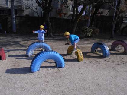 すべりだいも,上手にすべることができるようになりました。タイヤだって,こんなに上手にとべます。
