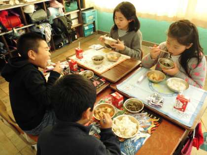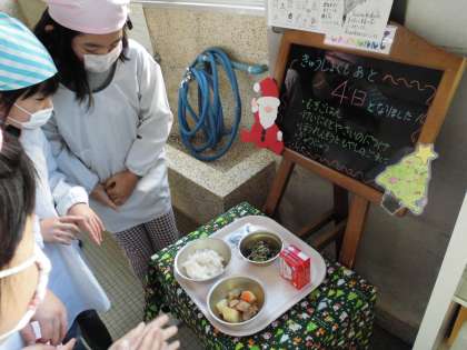 今日は野菜たっぷりの献立。体育の「サッカー」や学年遊びの「ドッジボール」で体を動かしておなかがペコペコです。味わって美味しくいただきました。ごちそうさまでした。