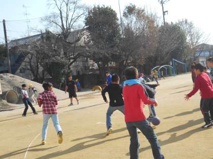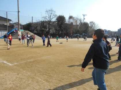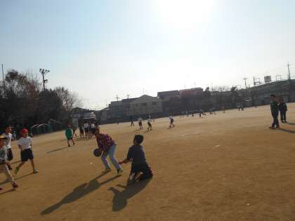 給食を食べた後は,すぐさま運動場へ出ています。今日も相変わらず1年生,3年生と一緒にドッジボールをする男子たち。女子も応援に来ていました。