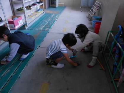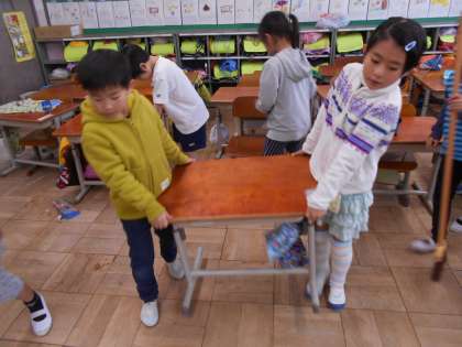 自分たちが使っている教室は,自分たちで掃除をします。ほうきやぞうきんの使い方が,だんだん上手になってきましたね。