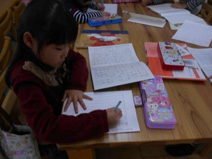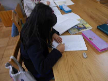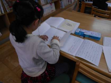 今日は,おすすめの本のパンフレット作りの続きをしました。お話を読んだ感想を考えました。あと少しで完成です。