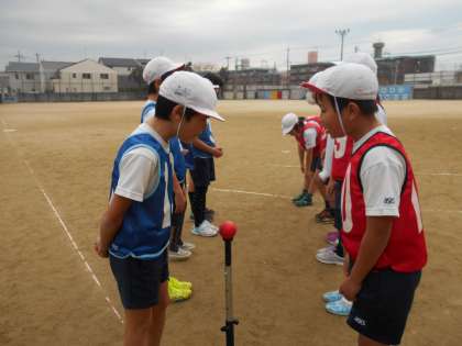作戦会議も挨拶も,自分たちで進めています。「この前は,この作戦で勝ったから,次は前回の作戦に加えてもうちょっとこうしよう!」などの応用を利かした作戦を立てていました。