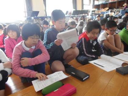 いよいよ学習発表会の練習が始まります。今日は,台本を読み,全体のイメージをつかむ時間でした。明日は配役を決めます。
