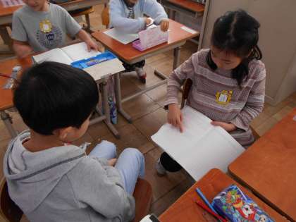 今日は「34−4」の計算の仕方を考えました。「一の位と十の位」を考えて解いている人もいました。上手に説明をすることができましたね。