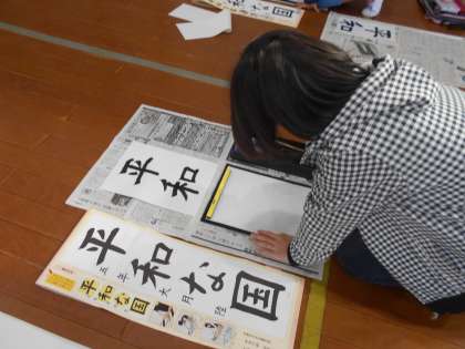 お手本をよく見ながら,丁寧に書いていました。