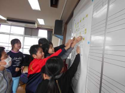 今日は,配役を決めました。やりたい役が友だちと同じになってしまって,「わたしこっちでもいいよ!」とすぐに譲ってあげる優しい姿もたくさん見られました。