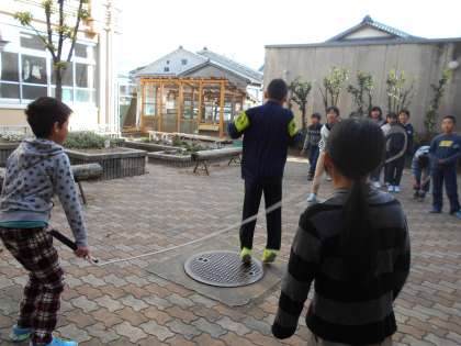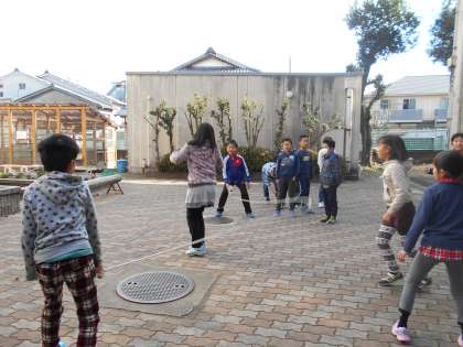 久々にクラスあそびをしました。体育でなわとびを学習していることもあり,大縄の連続跳びにチャレンジしました。目標は150回ですが,まだまだ届きそうにありません!特訓ですね!