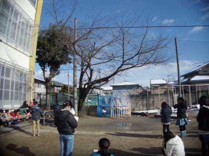 今日は,一年間観察し続けてきたサクラの木の冬の様子を見に行きました。