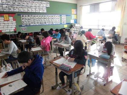 3〜6年生は冬休み前から取り組んできたジョイントプログラムのテストに取り組んでいます。がんばった成果を出せると良いですね。
