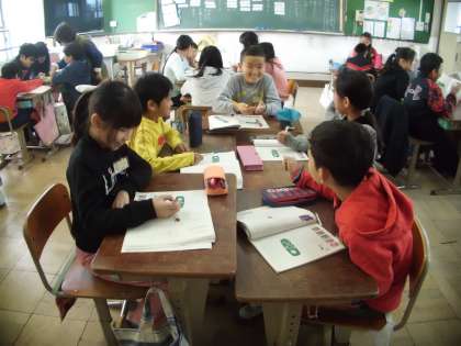 どのように読むか,グループで相談しています。