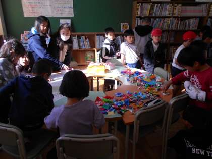 今日は,ビンゴ大会でした。運動場で遊べなかったからか,たくさんの人が図書室にきてくれました。景品もたくさん!図書委員さんたちは,思っていたよりもたくさんきて,とても驚いていました。