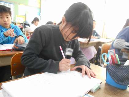 今日は,割合のグラフを書きました。目盛の読み間違いをしないように,集中しています。